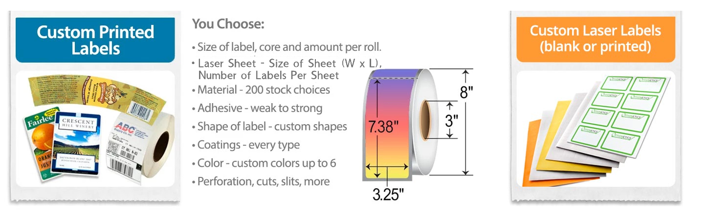We can manufacture any size labels you need on standard rolls or sheets. We also offer custom quantities per roll.